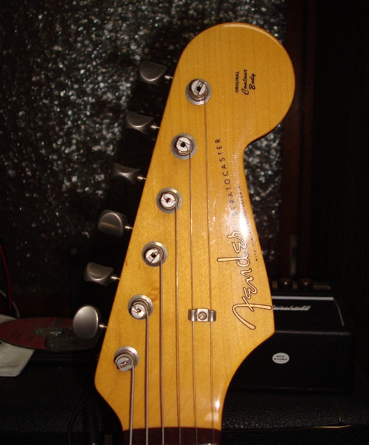 現行Fenderは、ナットからヘッド・トップまでの長さが短い上にトップの円の径が大きく、Stratocasterロゴマーク下のざぐりカーブのRは小さい。以前の物はRを大きくえぐっている。