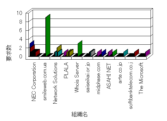 組織ユーザーにインターネット接続を提供する、商用または非営利団体、学術・行政機関などの、インターネット ドメイン で識別される団体や組織です。Microsoft Site Server Analysis は同じ組織に登録されたすべてのドメインを 1 つの組織としてグループ化します。ドメインがデータベースで使用できない場合は、1 つのインターネット ドメインが 1 つの組織を識別するのに使用されます。