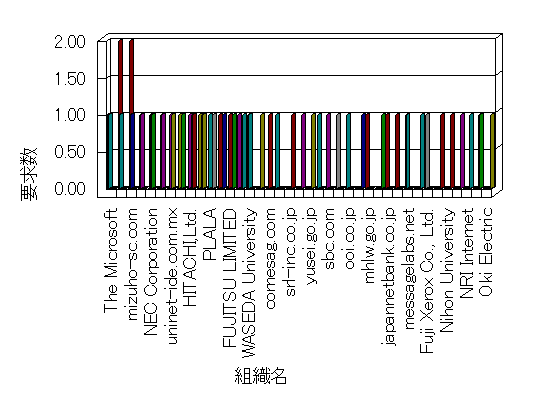 組織ユーザーにインターネット接続を提供する、商用または非営利団体、学術・行政機関などの、インターネット ドメイン で識別される団体や組織です。Microsoft Site Server Analysis は同じ組織に登録されたすべてのドメインを 1 つの組織としてグループ化します。ドメインがデータベースで使用できない場合は、1 つのインターネット ドメインが 1 つの組織を識別するのに使用されます。