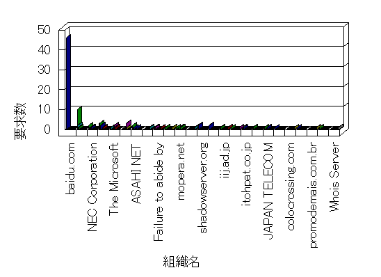 参照組織のサイトには、このサイトにリンクするページがあります。グラフでは、このサイトへのアクセス数に基づいた、上位 10 組織を示します。