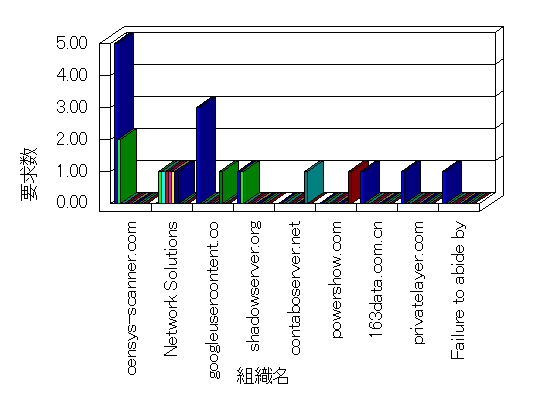 参照組織のサイトには、このサイトにリンクするページがあります。グラフでは、このサイトへのアクセス数に基づいた、上位 10 組織を示します。